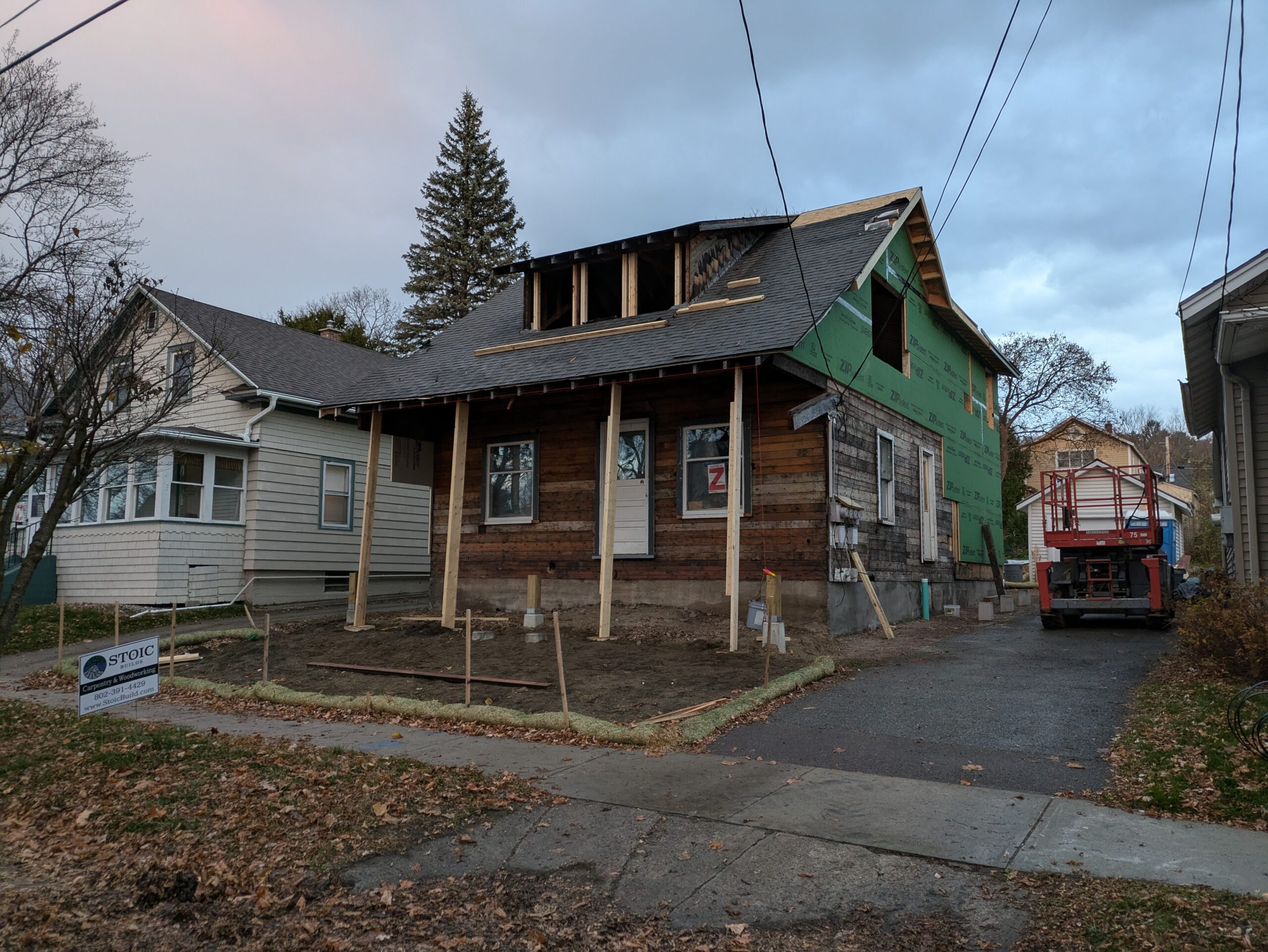 Stoic Builds was contracted to perform a major renovation on a multi-family residence in the Five Sisters neighborhood of Burlington. The renovation included a gut, a second story addition, and two new roof ridgelines. 3 apartment units were created and finished to be highly-functional with an emphasis on both energy and spatial efficiency.