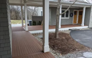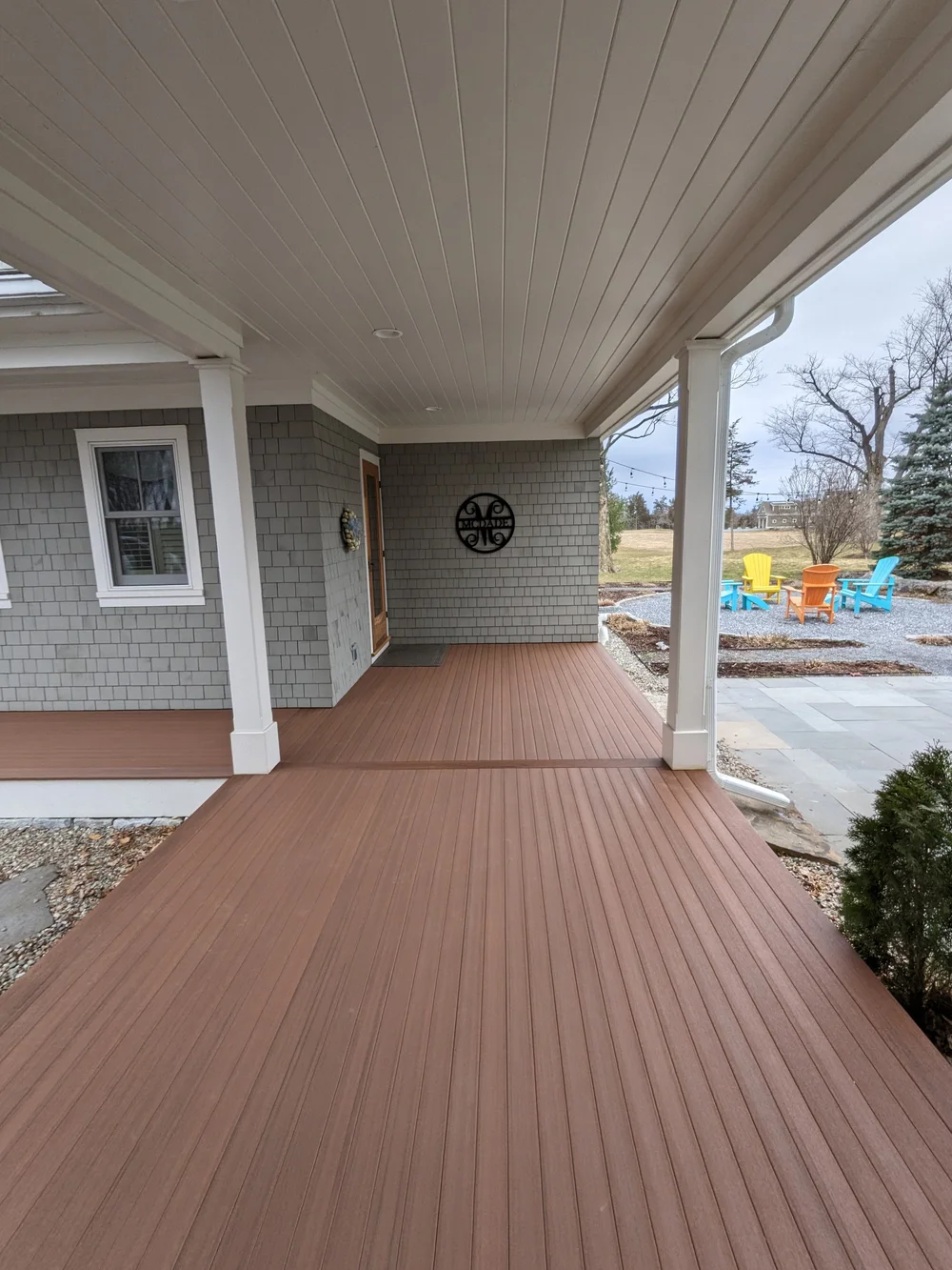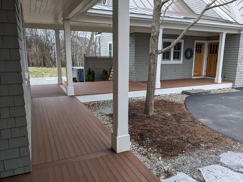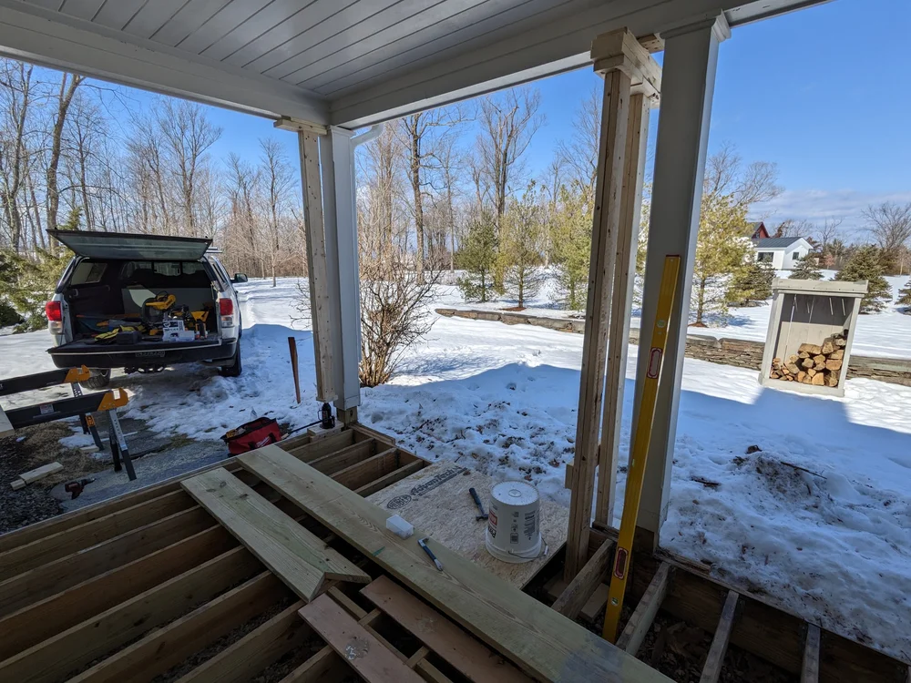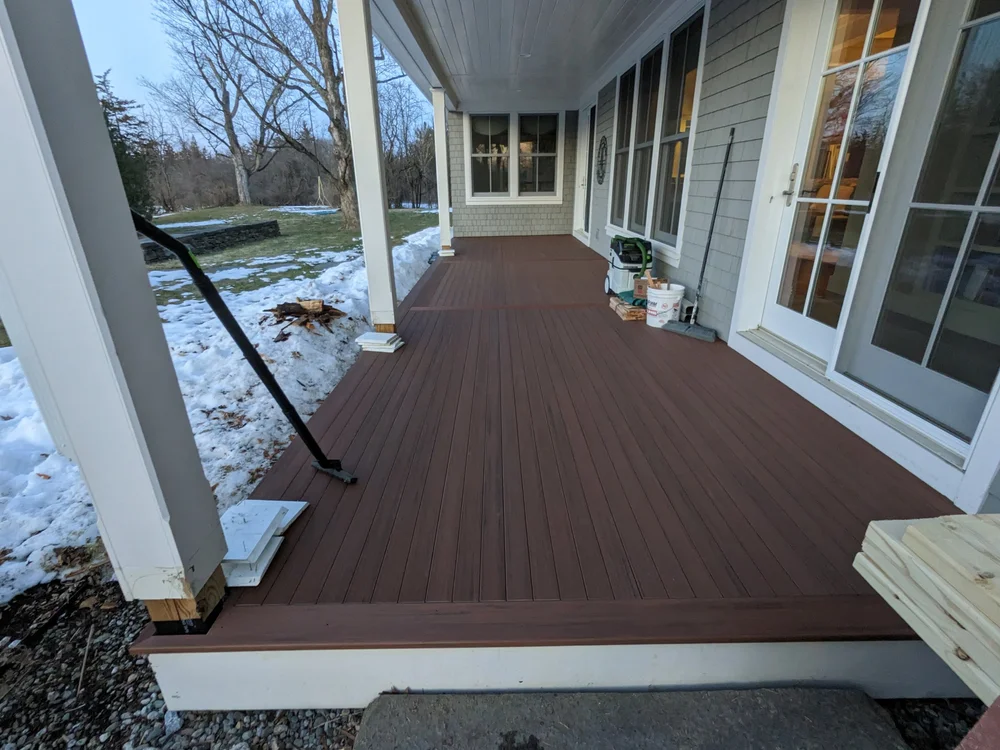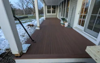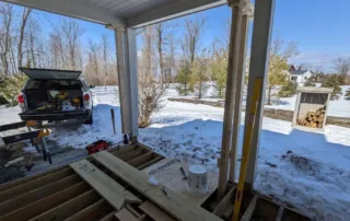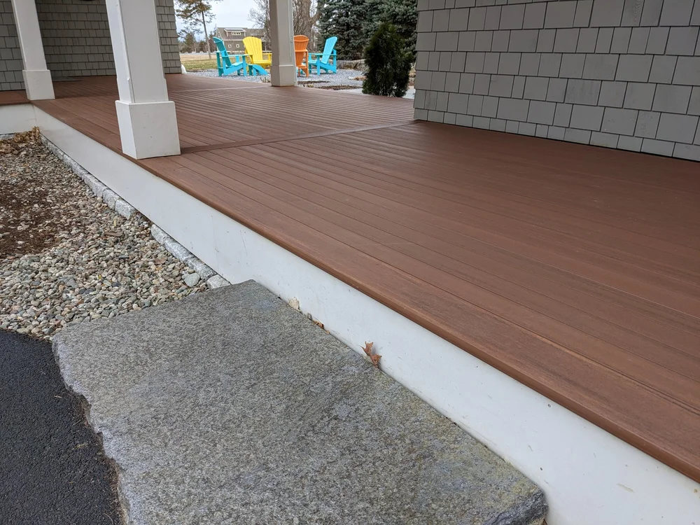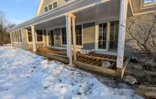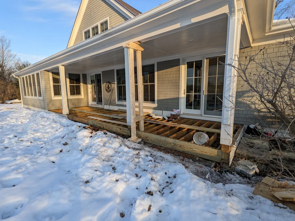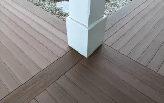 Stoic Builds was contracted to replace existing fir decking with composite T&G decking. Upon removal of the existing decking, some areas of structural rot were discovered. Temporary bracing and replacement of joists were required. To help mitigate the chance of future rot joist flashing was applied before the installation of composite decking.